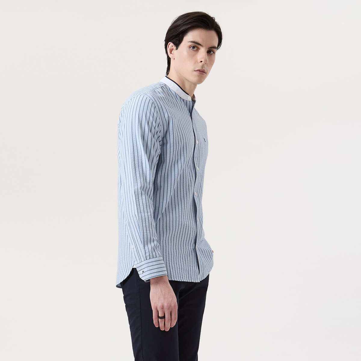 1,795.00 ฿Original price was: 1,795.00 ฿.1,615.50 ฿Current price is: 1,615.50 ฿.เสื้อเชิ้ตแขนยาวคอจีนสีออฟไวท์ลายทางแนวตั้ง ดีไซน์ที่ตอบโจทย์ทั้งสไตล์ทางการและลำลอง ที่สวมใส่สบาย ผลิตจากผ้า Easy Iron ช่วยให้รีดง่าย ลดการยับ และพร้อมใช้งานได้ทันที จุดเด่นคือ ปกคอแถบขาวเดินเส้นขอบด้วยสีฟ้า ที่คอนทราสต์กับตัวเสื้ออย่างลงตัว ทำให้ลุคดูดีและแตกต่างจากเชิ้ตคลาสสิกทั่วไป เสริมความเรียบร้อยด้วย กระดุมเรียงตลอดแนวเสื้อ และรายละเอียดปักโลโก้ “L” บริเวณอกซ้าย เสื้อเชิ้ตตัวนี้สามารถแมตช์ได้กับทั้งกางเกงสแล็คเพื่อความสุภาพ หรือกางเกงเกงชิโน่เพื่อความลำลองที่ดูดี – เสื้อเชิ้ตแขนยาวคอจีน สีออฟไวท์ ลายทางแนวตั้ง – พร้อมกระดุมสีขาวที่เรียงตลอดแนวเสื้อ – แขนเสื้อกลัดกระดุม เพิ่มความกระชับ – ตกแต่งโลโก้ “L” ปักที่อกซ้าย – มี 2 สีให้เลือก สีออฟไวท์ และ สีฟ้า วัสดุ : 45% POLYESTER, 45%COTTON, 10%RAYON ทรง : Regular Fit…