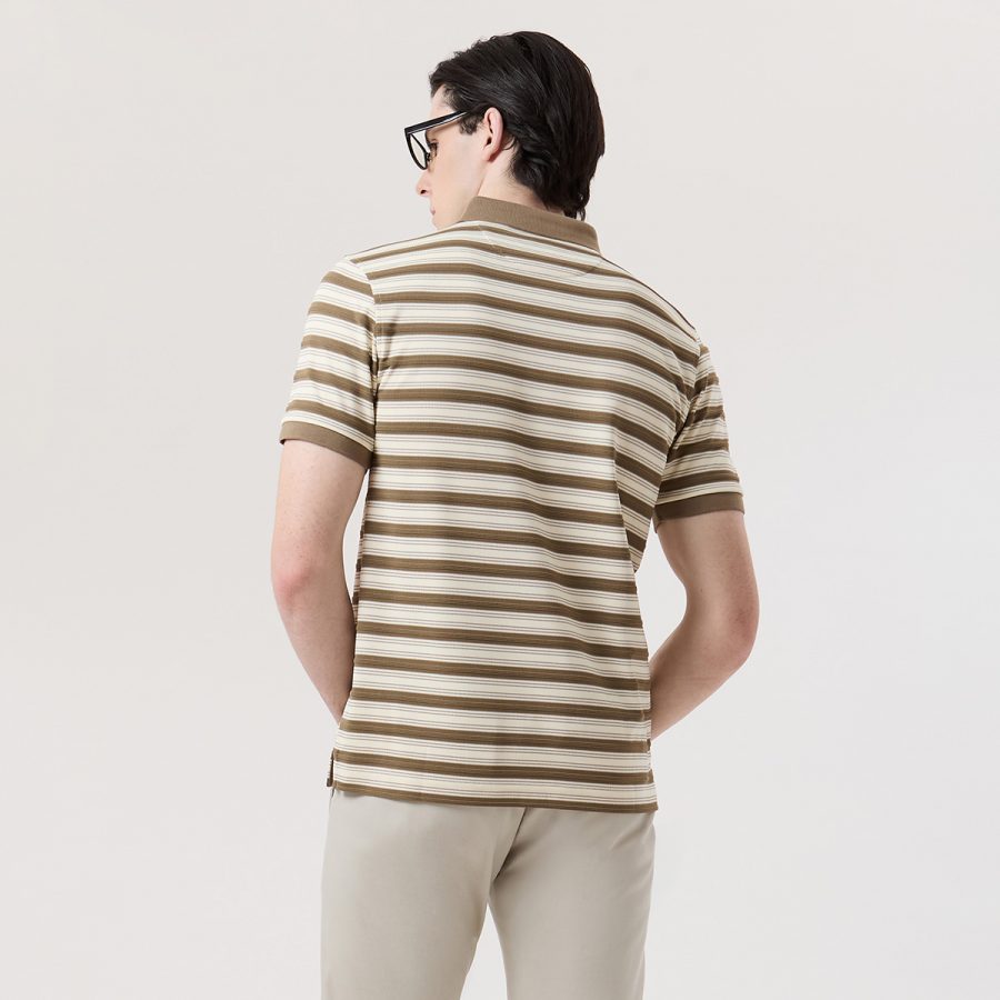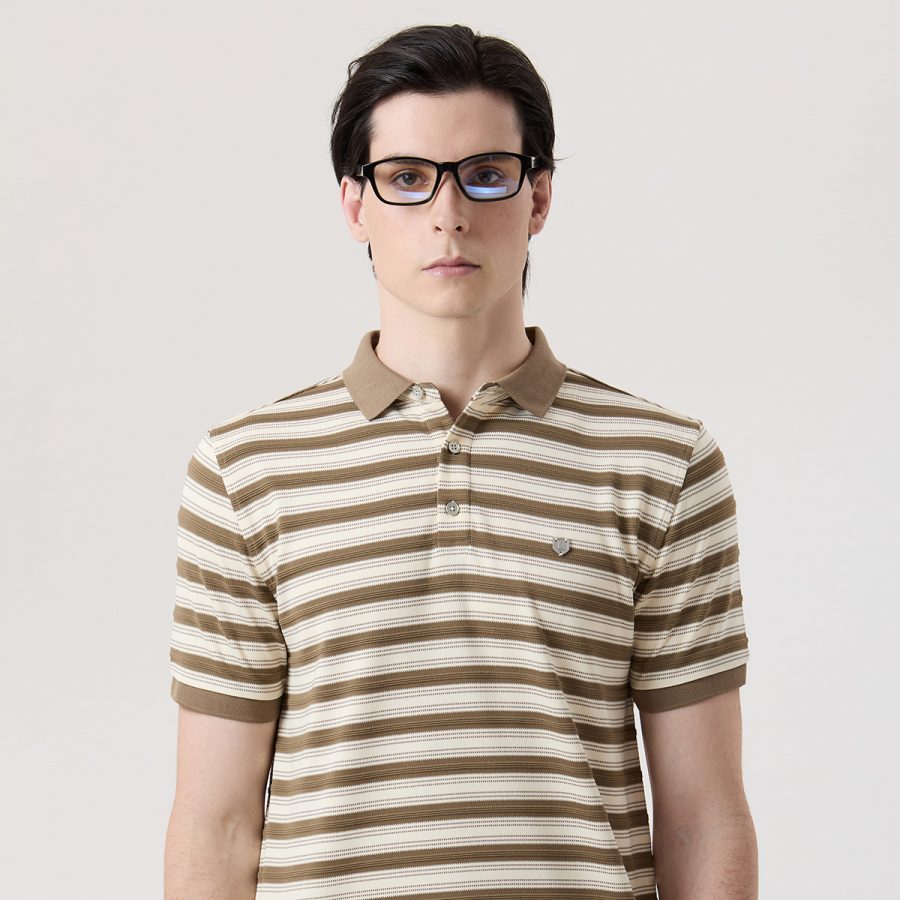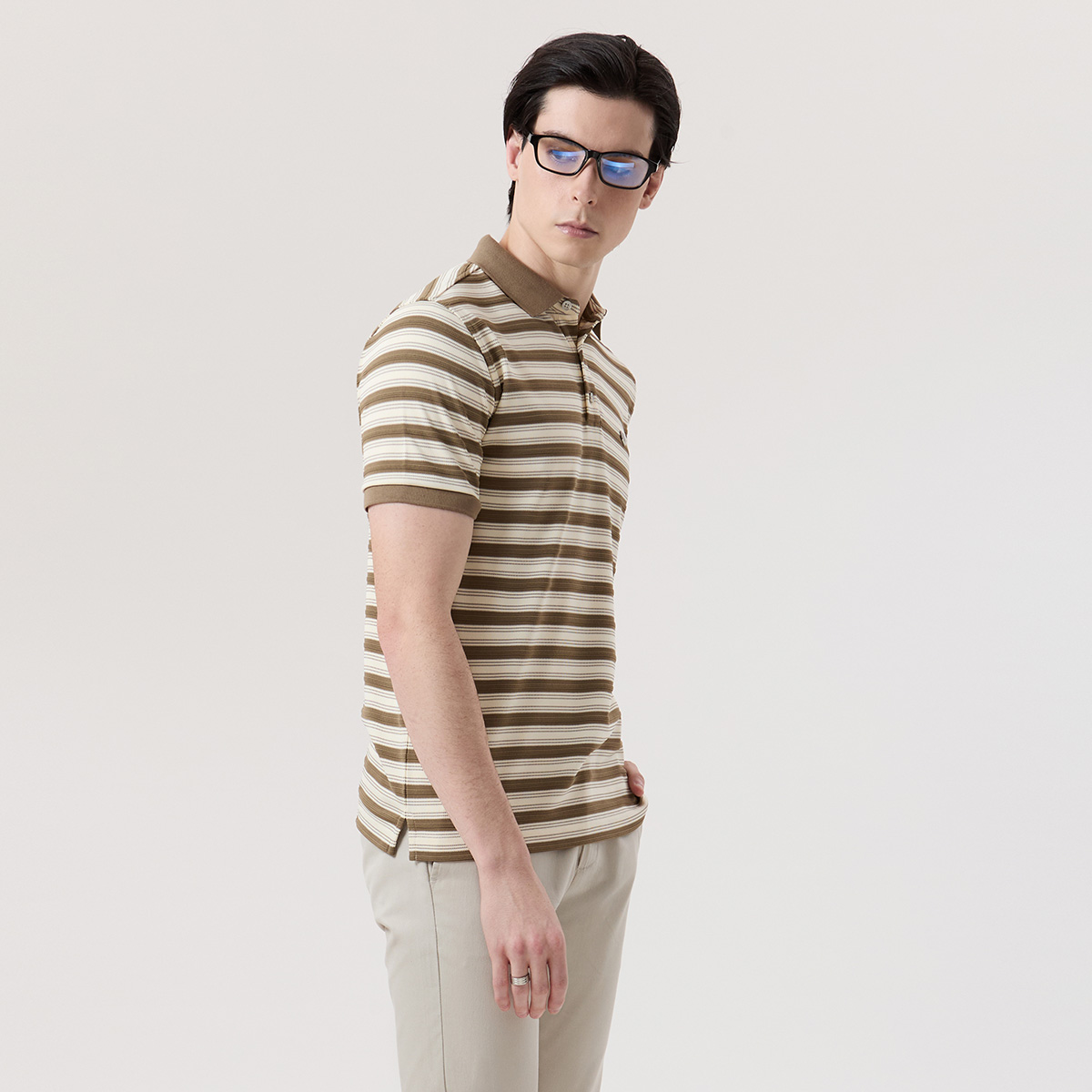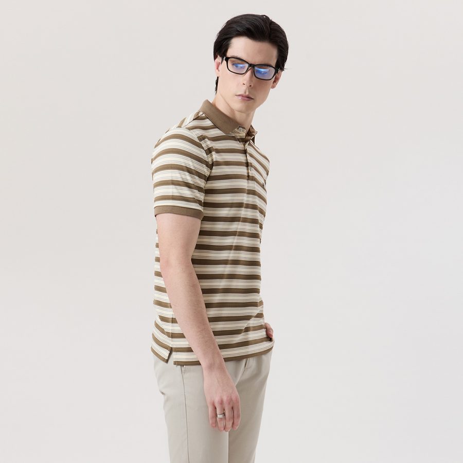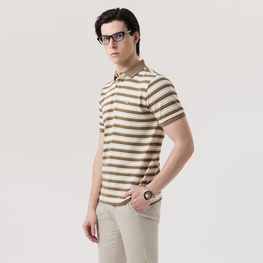 – เสื้อโปโลแขนสั้นโทนสีเขียว ลายทาง