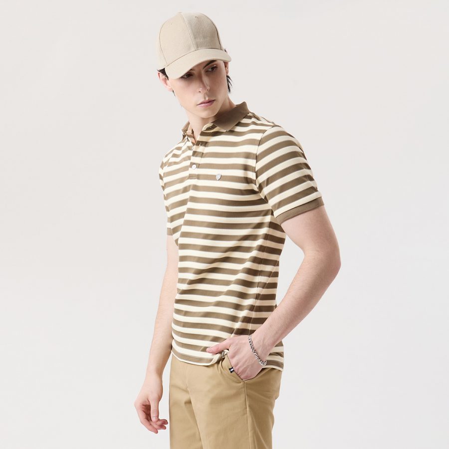 – เสื้อโปโลแขนสั้นโทนสีเขียว ลายทาง