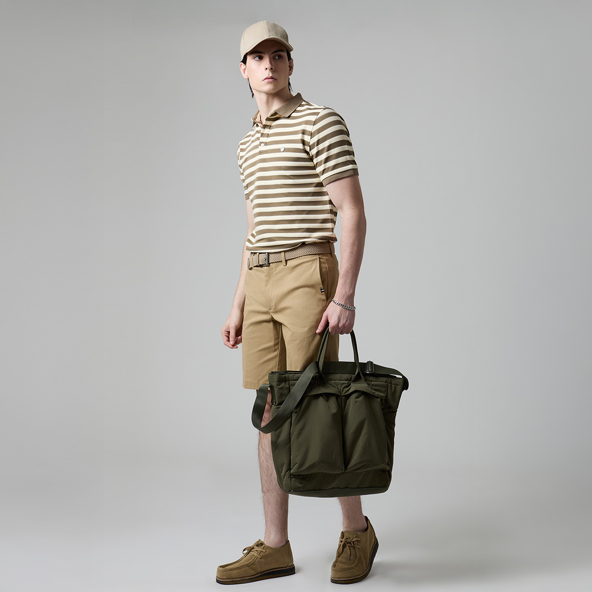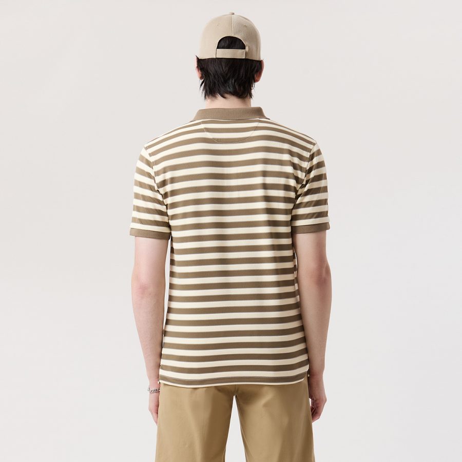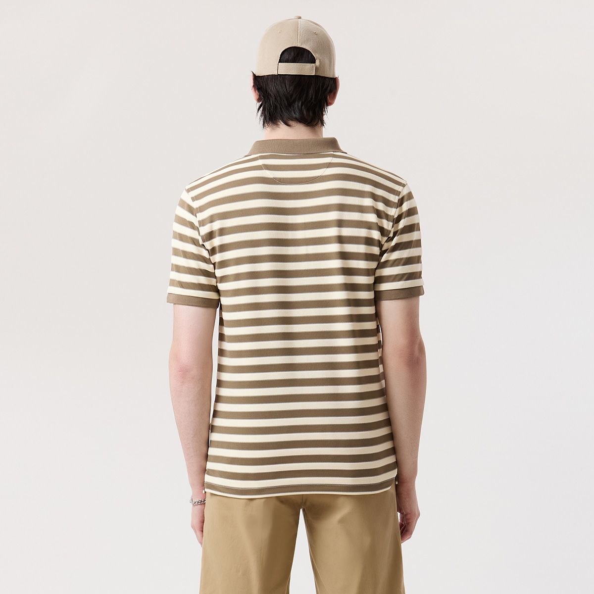 เสื้อโปโลแขนสั้นลายทางสีเขียว ผลิตด้วยเทคโนโลยีการตกแต่งผ้าแบบพิเศษ ทำให้เนื้อผ้า ยับยาก ไม่จำเป็นต้องรีด คงความเรียบตลอดวัน เหมาะกับสภาพอากาศร้อน โดดเด่นด้วยการทอ ที่ให้ลายทางคมชัด มีมิติ และทนทานกว่าการพิมพ์ทั่วไป ดีไซน์เสริมด้วย คอปกและแขนสีเข้าคู่ กระดุมเงิน และโลโก้ “L” สีเงิน ที่อกซ้าย เติมเต็มความพรีเมียมในทุกมุมมอง