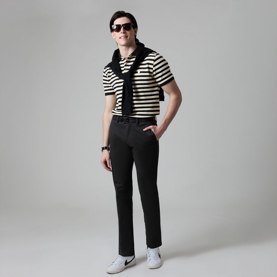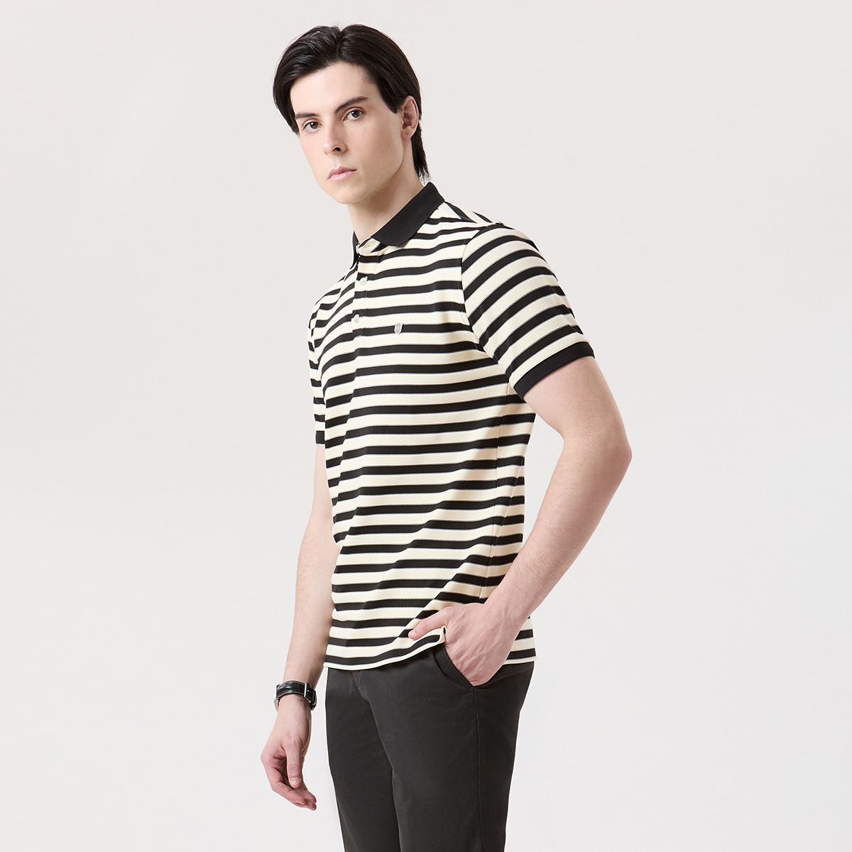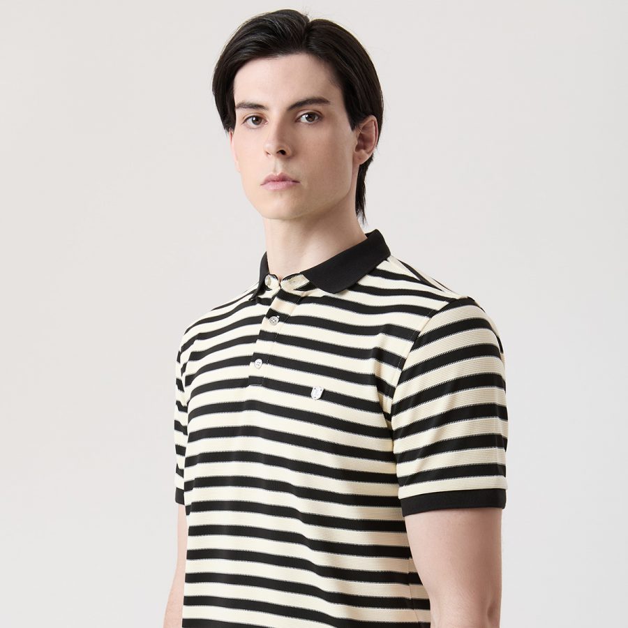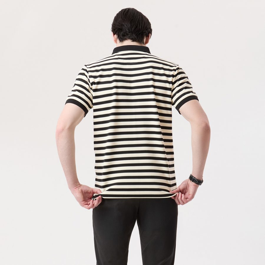 จากจุดเริ่มต้นในฐานะเครื่องแบบของ ทหารเรือฝรั่งเศส เสื้อลายทางได้พัฒนาเป็นสัญลักษณ์ของแฟชั่นลำลองและ “Nautical style” ที่ไม่มีวันตกยุค  เสื้อโปโลแขนสั้นลายทาง สีดำ ที่ให้ความรู้สึกอบอุ่น สุขุม และทันสมัย ผลิตด้วยผ้า ที่ทอพิเศษ ลายทางชัดเจน มีมิติ และทนทานกว่าเสื้อพิมพ์ลายทั่วไป มาพร้อมคุณสมบัติ Non Iron ไม่ยับง่าย แห้งไว สวมใส่สบายแม้ในอากาศร้อนชื้น เสริมความลงตัวด้วย คอปกและแขนสีแมตช์ กระดุมเงิน และโลโก้  “L” สีเงิน ยกระดับเสื้อโปโลให้ทั้งดูดีเหมาะทั้งวันทำงานและวันสบาย ๆ