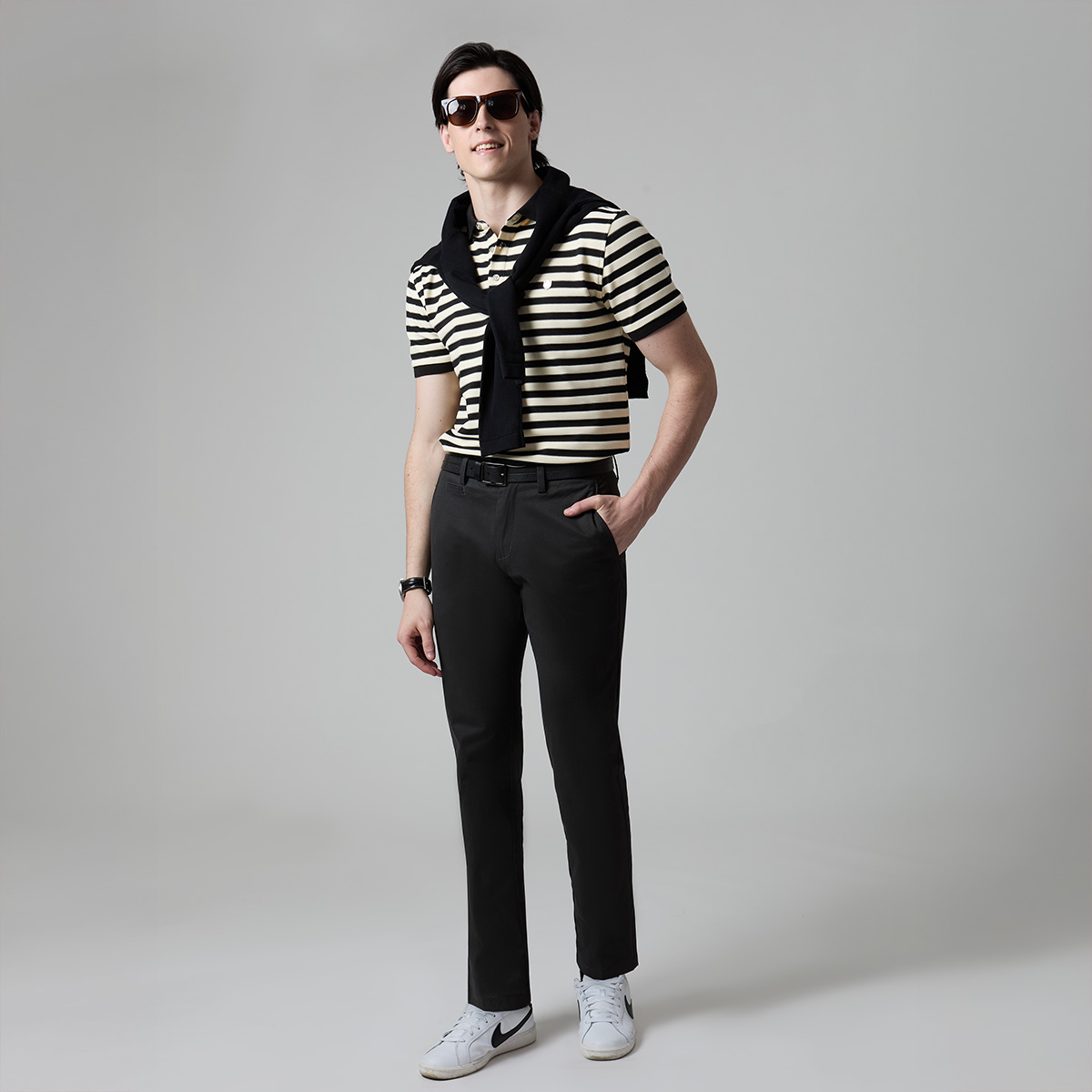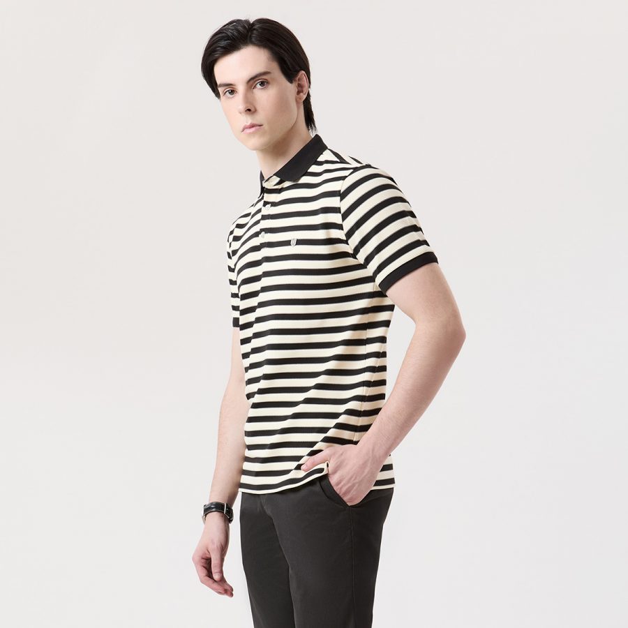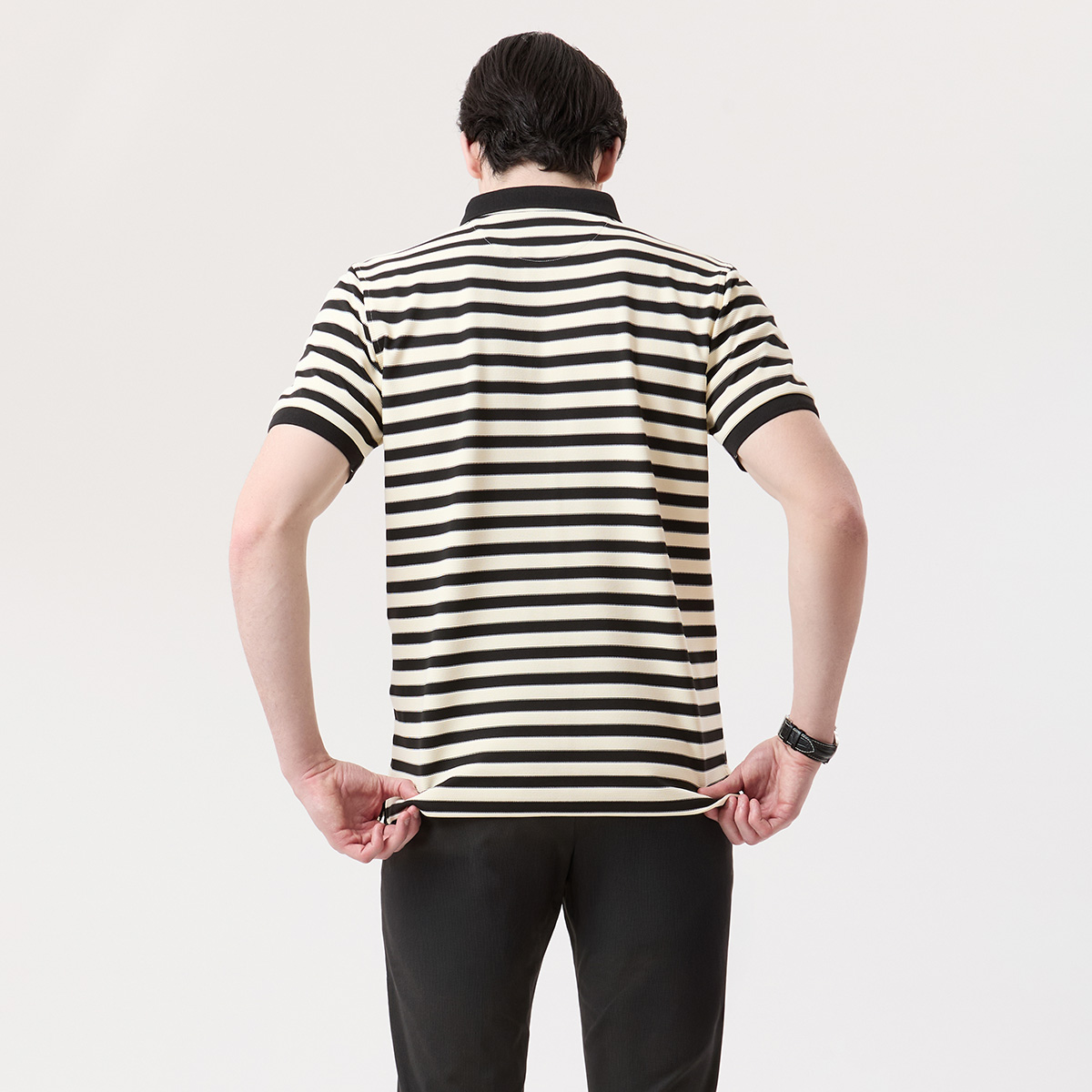 – เสื้อโปโลแขนสั้น ลายทางสีดำ