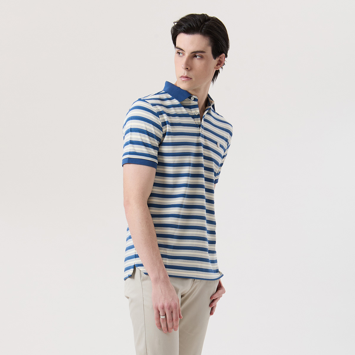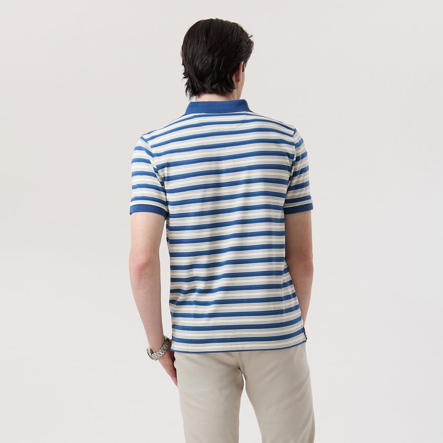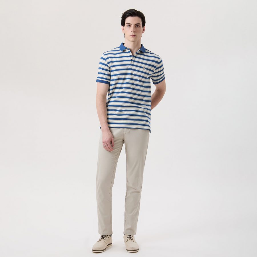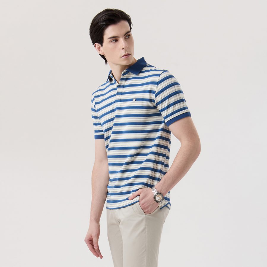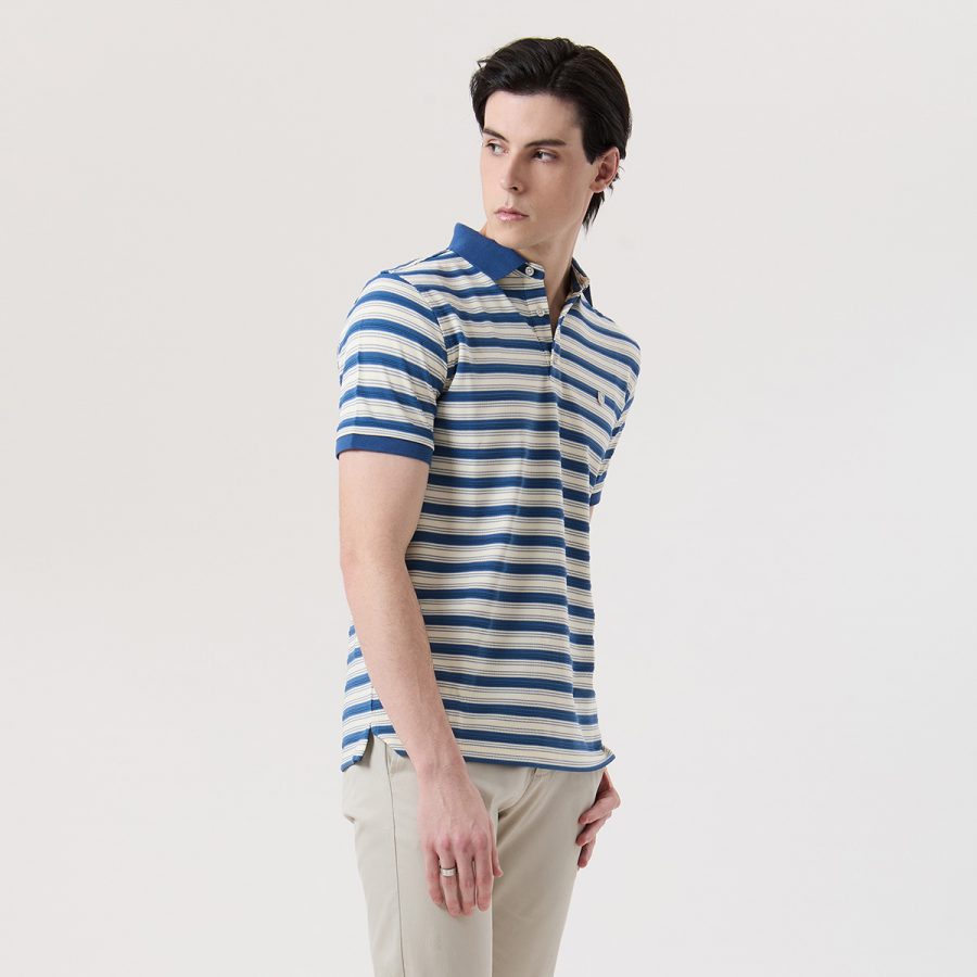 – เสื้อโปโลแขนสั้น สีน้ำเงินลายทาง