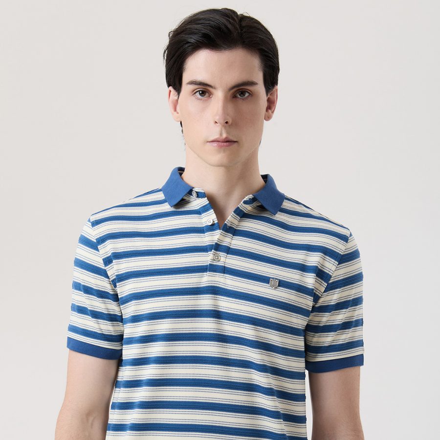 เสื้อโปโลแขนสั้นลายทางสีน้ำเงิน ดีไซน์เรียบแต่มีเสน่ห์ ลายทางทอพิเศษให้ความคมชัดและดูมีมิติไม่ซ้ำใคร โทนสีน้ำเงิน สื่อถึงความมั่นใจและความเท่ที่เข้าได้กับทุกโอกาส ตกแต่งด้วย คอปกและแขนสีแมตช์ กระดุมเงิน และโลโก้  “L”สีเงิน ที่อกซ้าย เติมรายละเอียดที่ดูพรีเมียม เสื้อโปโลตัวนี้คือคู่หูที่พร้อมไปกับคุณได้ทั้งวันทำงานและการใช้ชีวิตที่ต้องการความคล่องตัว
