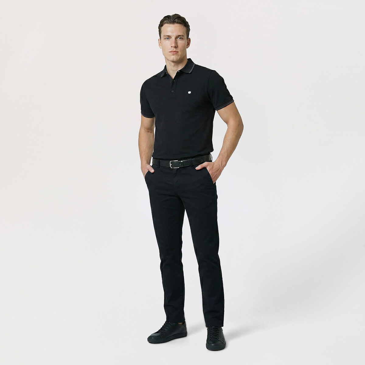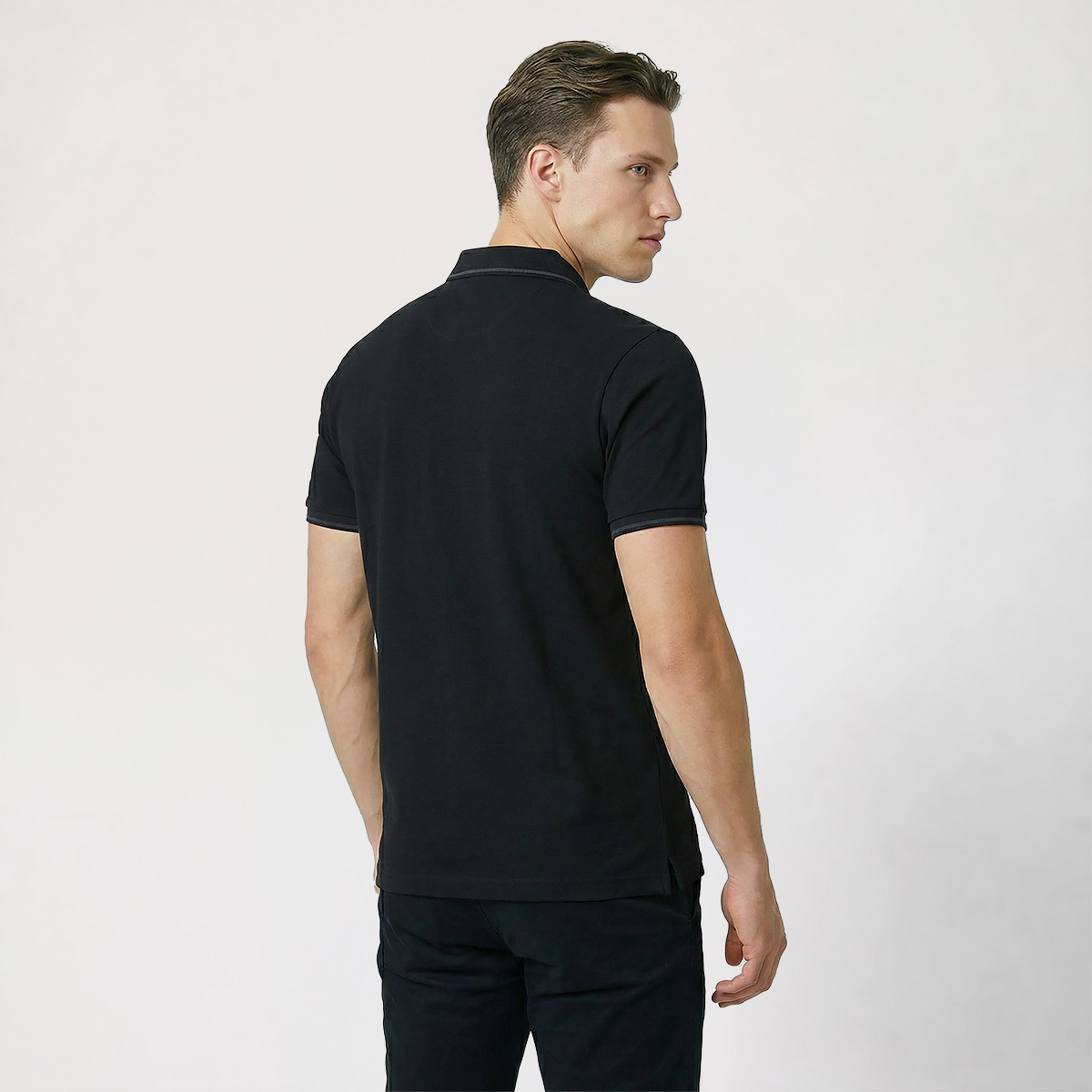 เสริมสไตล์ให้ดูดีอย่างเป็นธรรมชาติด้วยเสื้อโปโลสีดำเข้มจาก LTD ที่ออกแบบดีเทลผ้าสีเทาอ่อนซ่อนอยู่ด้านในปก ช่วยเพิ่มความแตกต่างให้เสื้อสีพื้นดูน่าสนใจมากขึ้น เนื้อผ้าให้ความรู้สึกนุ่ม ระบายอากาศได้ดี ใส่สบายตลอดวัน พร้อมโลโก้โลหะสีเมทัลลิกที่หน้าอก ช่วยเติมความมั่นใจให้การแต่งตัวในลุคสมาร์ทแคชชวลดูลงตัวและดูดีได้ทุกวัน